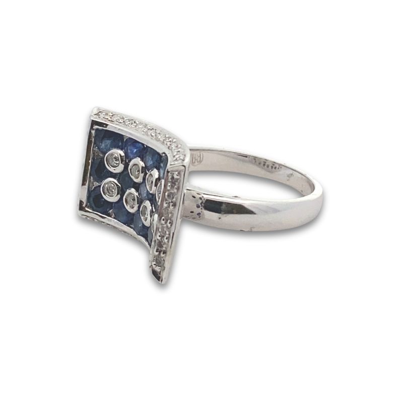 Concave Topped Diamond and 2.25ct Sapphire Cocktail Ring, 18kt