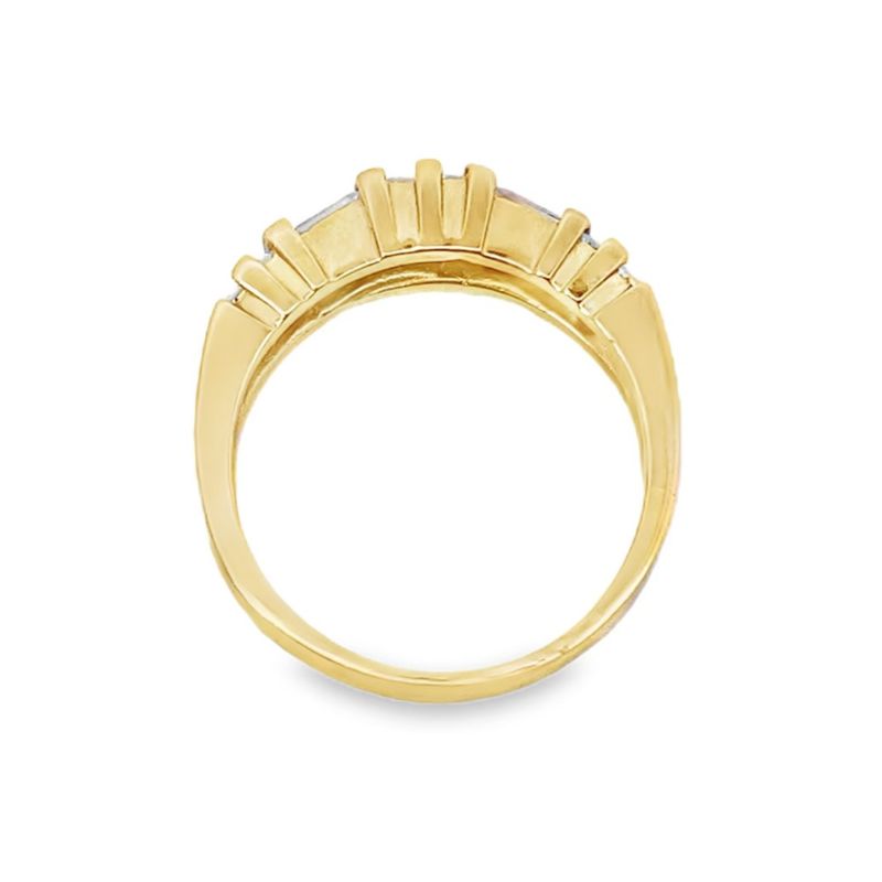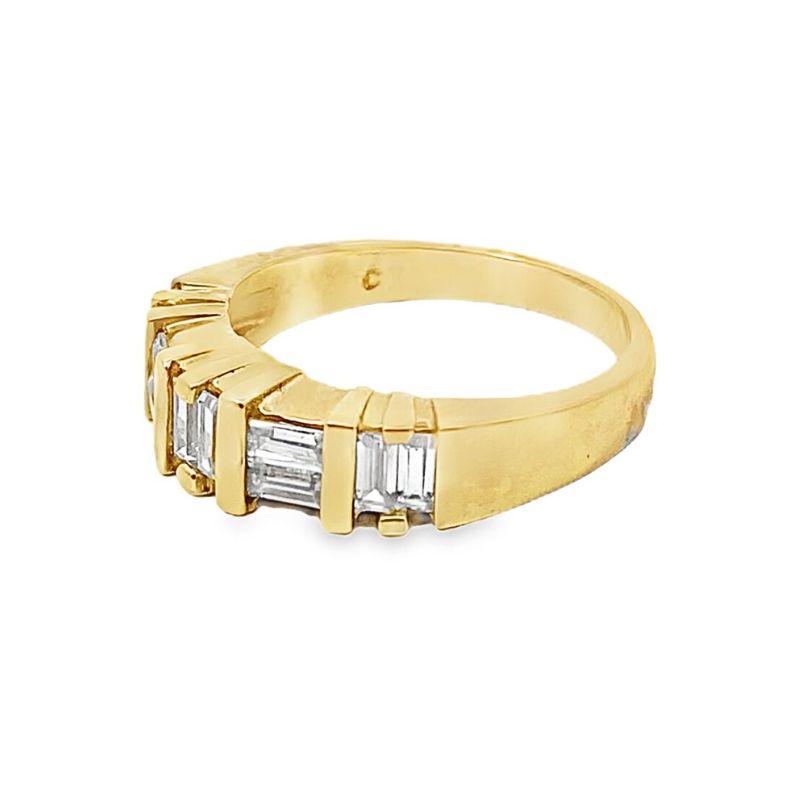 10 bar set baguettes set in 14kt yellow gold. Taperes from 4.60mm to 2.60mm. Finger size – 7