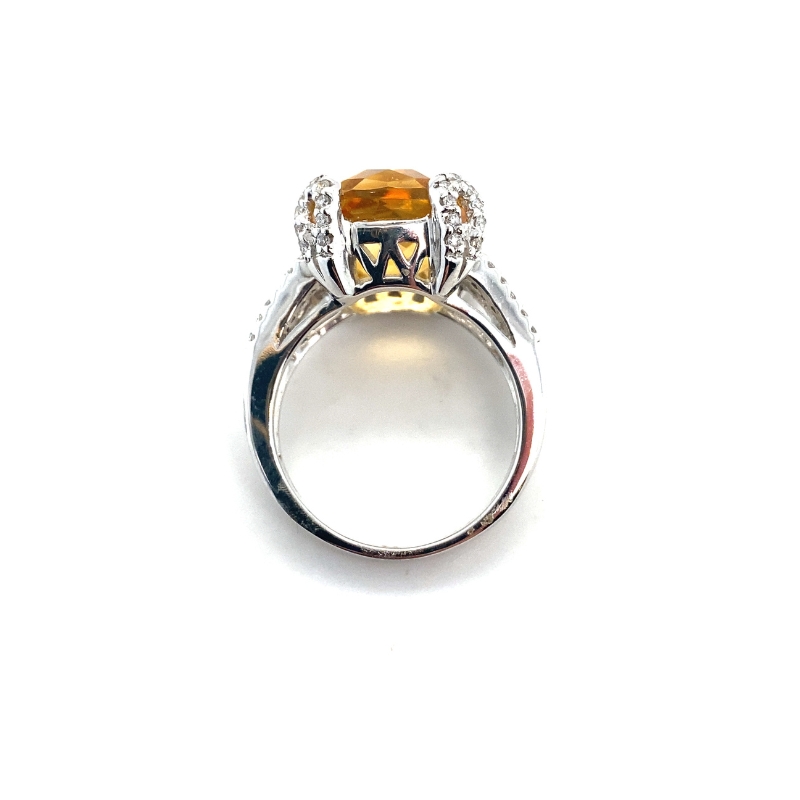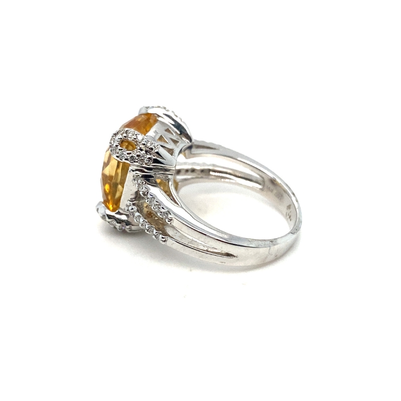 Cushion Citrine Center Stone w/ Diamonds Ring with one 8.60ctw Citrine Center Stone and 0.30ctw Diamonds on Band and Prongs set in 14kt White Gold