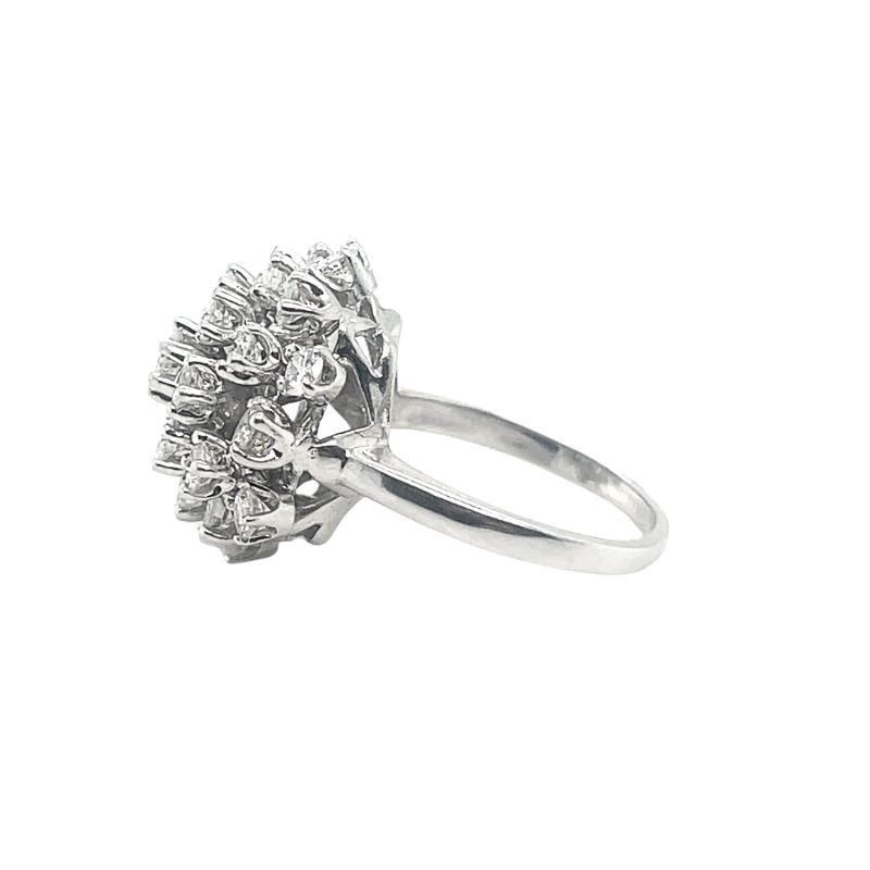 Diamond Cluster Cocktail Ring, 14kt White Gold. 26 Round Diamonds, 1.40ctw, Clarity: SI, Color: G.
