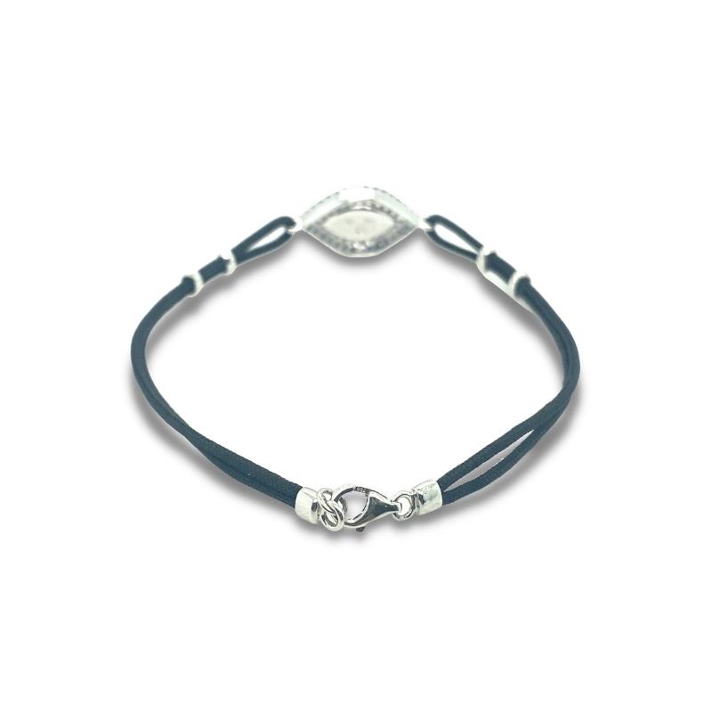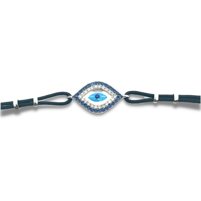 Diamond Sapphire Evil Eye Rope Bracelet with 22 round diamonds, .19ctw, with 30 sapphires .28ctw set in 18kt White gold