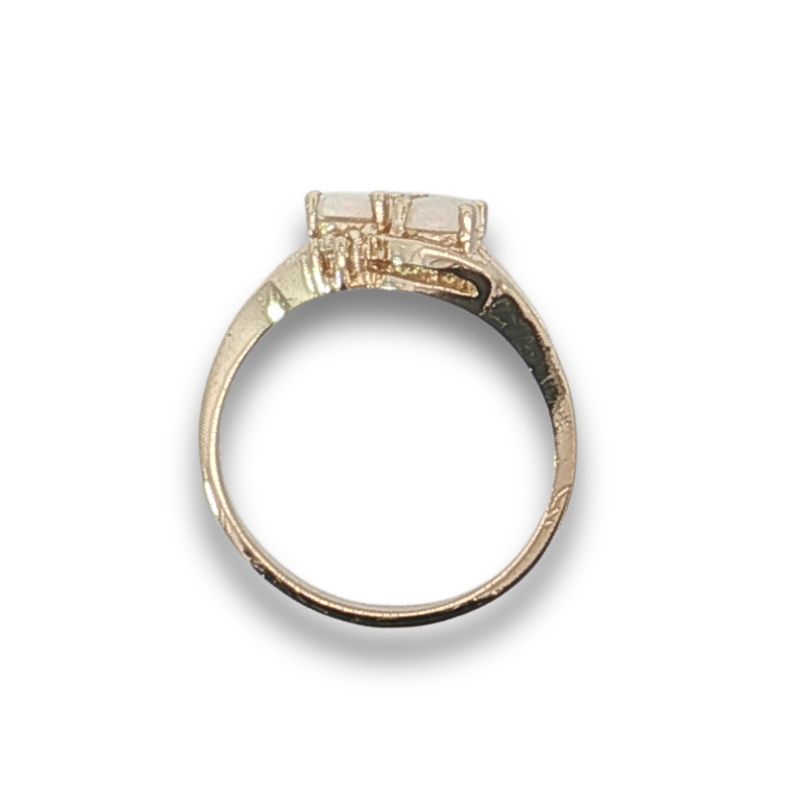 Double Opal with Diamond Ring, 14kt Yellow