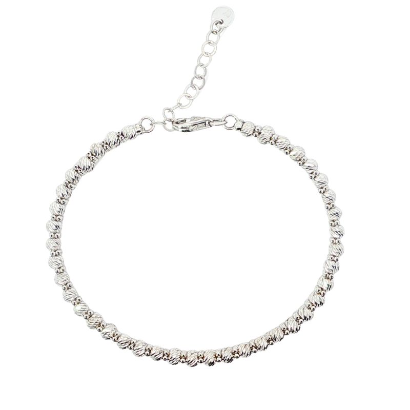 Double Row Diamond Cut Bead Bangle. 3.0mm Beads 6.0mm Wide. Crafted in 14kt White Gold with Adjustable Lobster Clasp