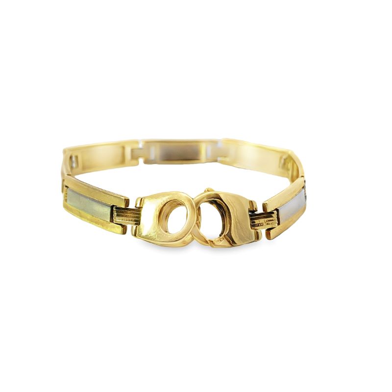 Fancy Itallian Two Tone Bar Bracelet, 14kt