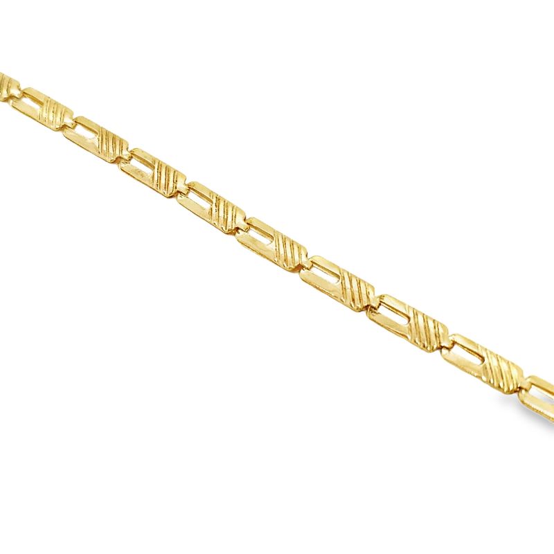 Fancy Link Bracelet, with a polished finish and texured line design, crafted in 18kt yellow gold