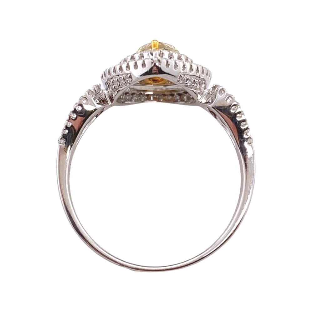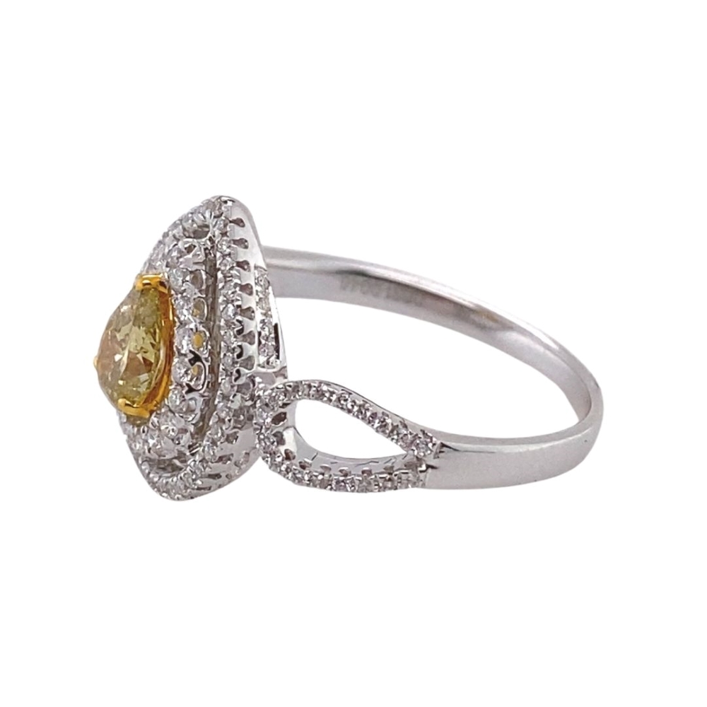 Fancy Yellow and White Diamond Engagement Ring With Double Pear Halo