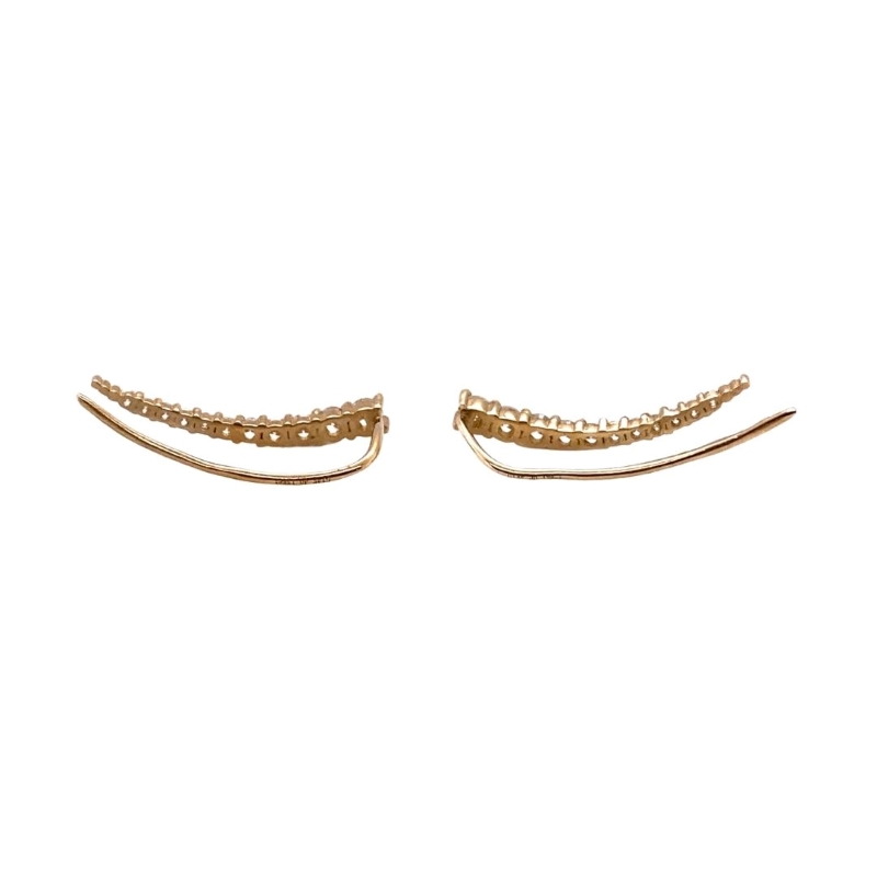 Graduated Diamond Climber Earrings, with 22 round diamonds, Carat 0.28ct, Clarity SI-1, Color F/G, prong set in 14kt Yellow Gold. Fancy Earwire Back. Length 16mm