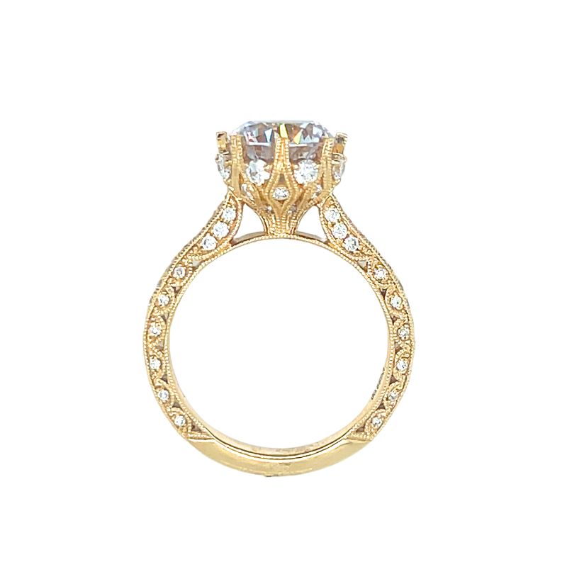 Ladies Diamond Engagement Ring Setting, 14kt Yellow Gold. With 80 Round Diamonds, 0.69ctw. Showed with CZ center.