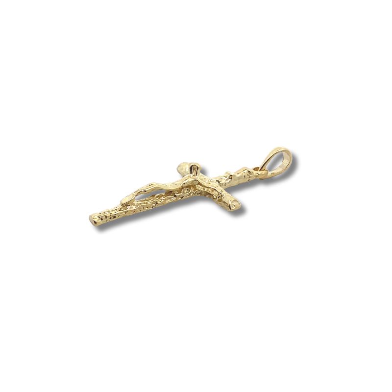 Large Bark Crusifix, 14kt Yellow
