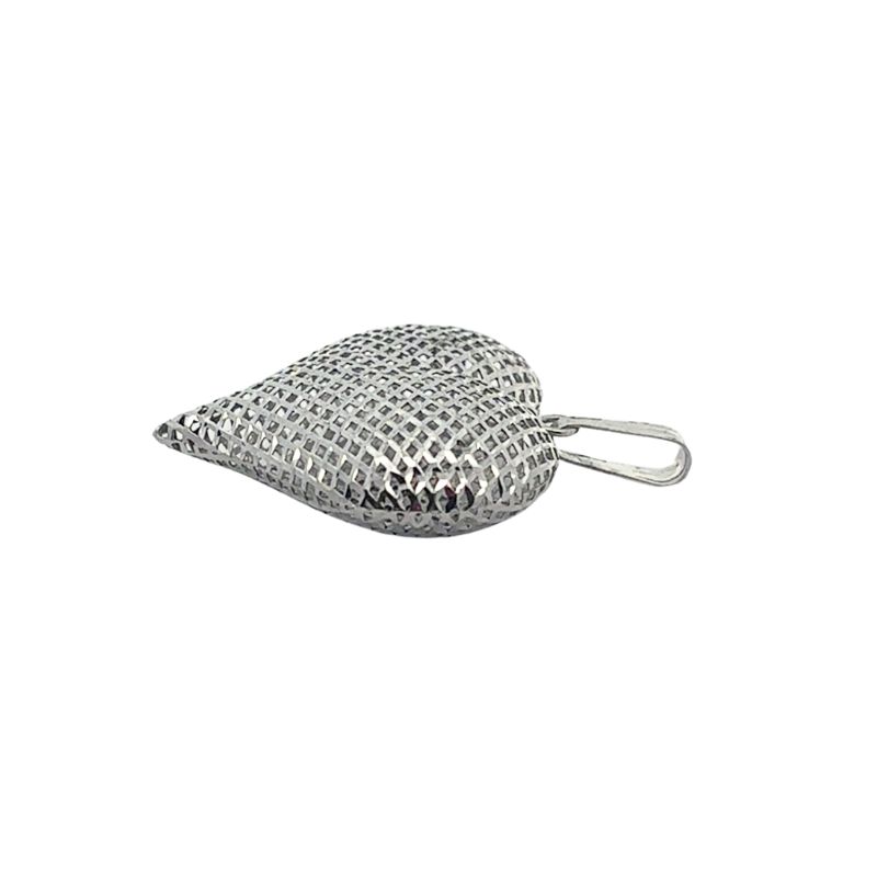 Large Puff Heart with Diamond Cut Filigree Pattern. 32mm Wide Crafted in 14kt White Gold
