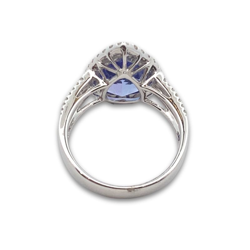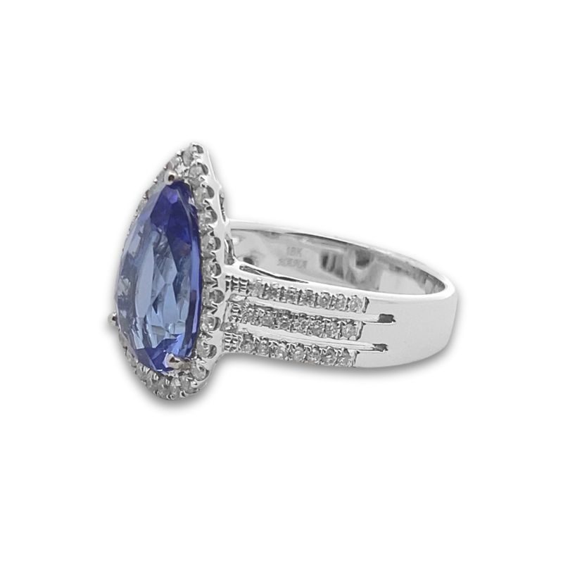 Large Pear Shaped Tanzanite with Diamond Halo and Three Row Diamond Band