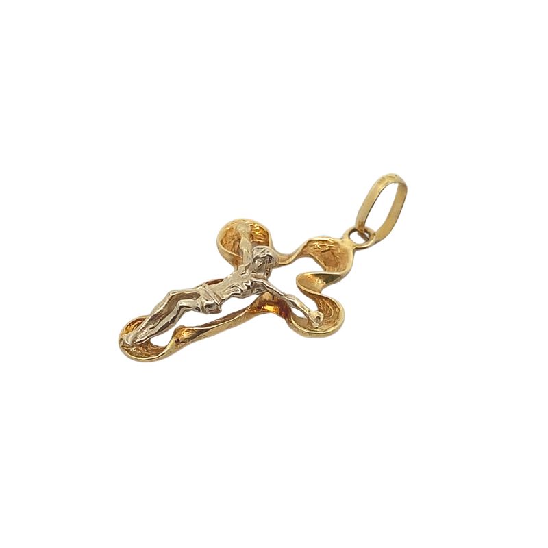 Open Freeform Two Tone Crucifix, 14kt