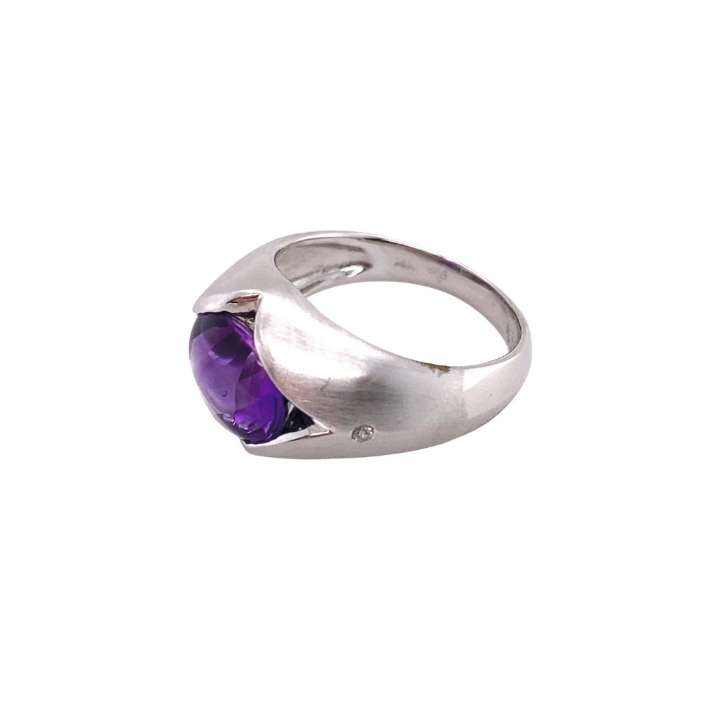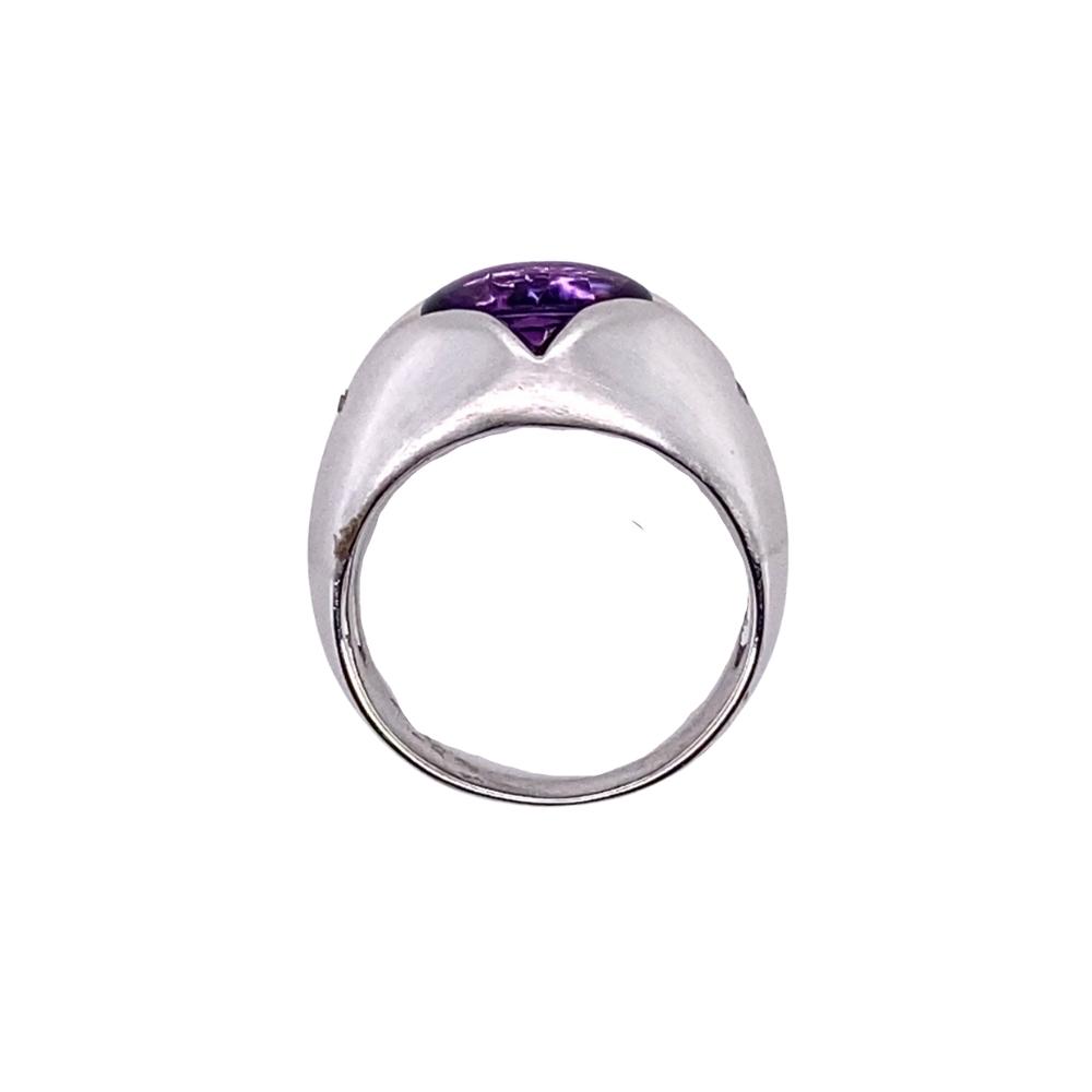 Oval Amethyst Cabochon Ring, 14kt white gold. 10mm Oval Amethyst Cabochon – 3.45cts. Width – 12mm. This ring is sizable.