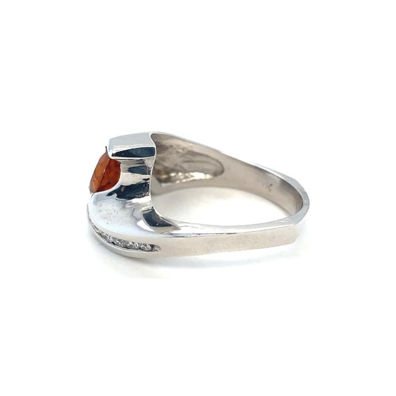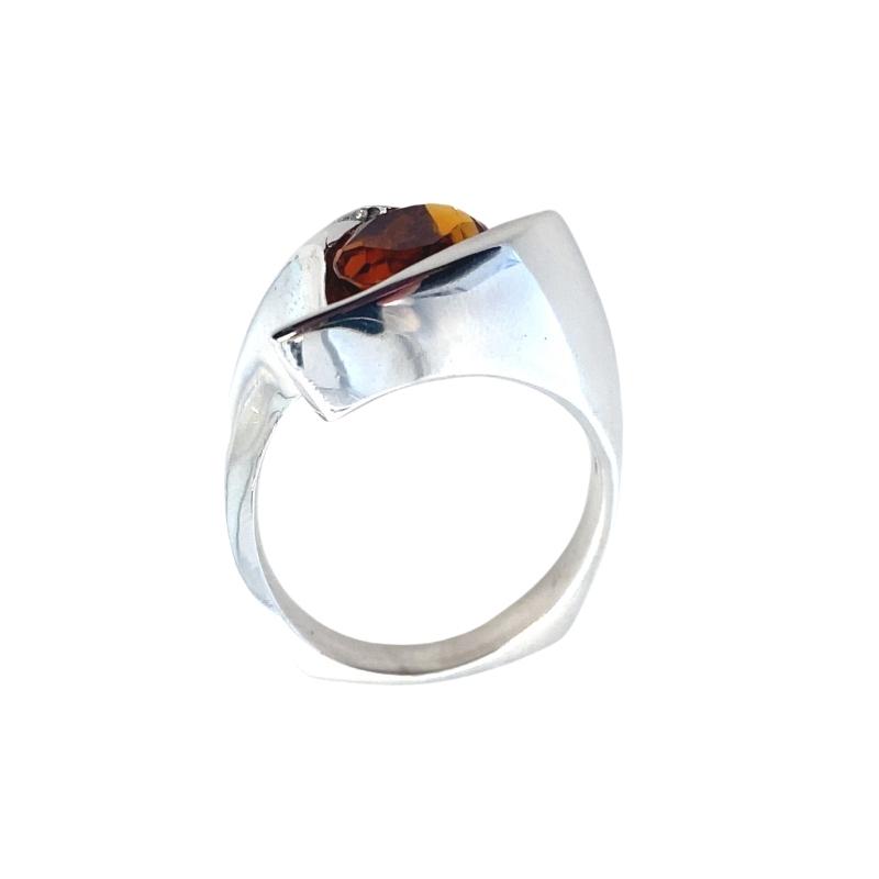 Oval Golden Topaz Free-Form ring with Diamond Accents, 14k white gold. Topaz – 1.60cts, 6 Round Diamonds – 0.15cts. Width – 14mm tapering to 3mm. This ring is sizable..