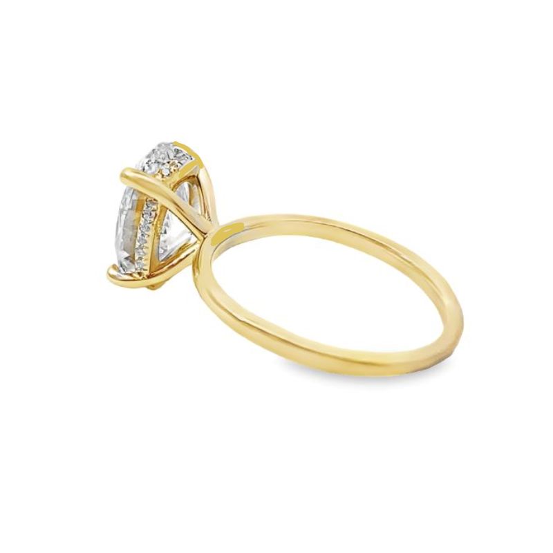 Oval Lab Grown Diamond at 2.63ct, VS-1 Clarity and E Color. IGI Cert #LG546232011. 24-rd Diamond in Underhalo at 0.10ctw. Crafted in 14kt Yellow Gold.