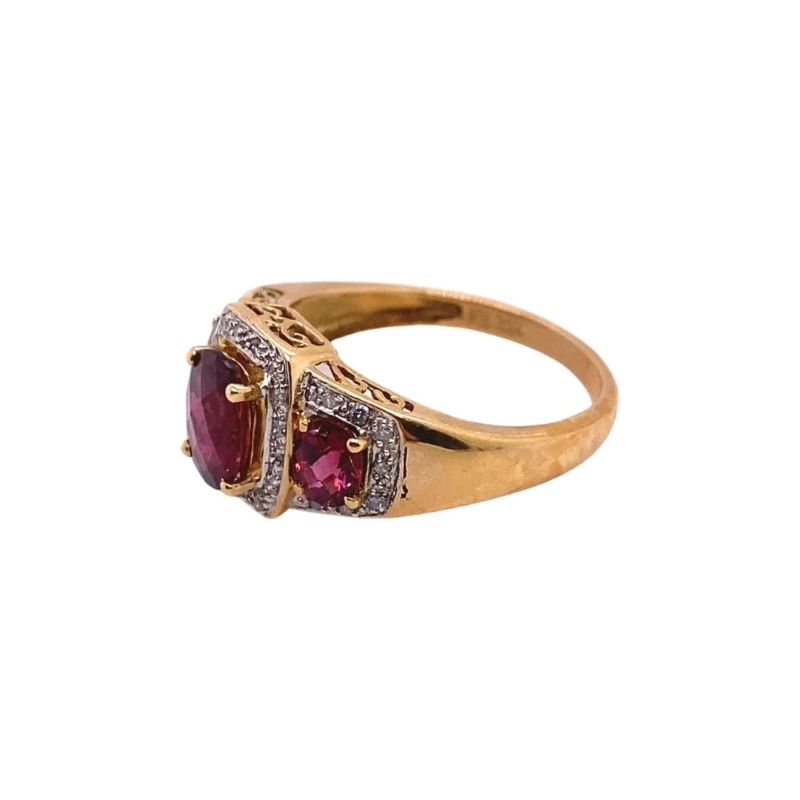 3 Stone Pink Tourmaline and Diamond Three-Stone Ladies Cocktail Ring
