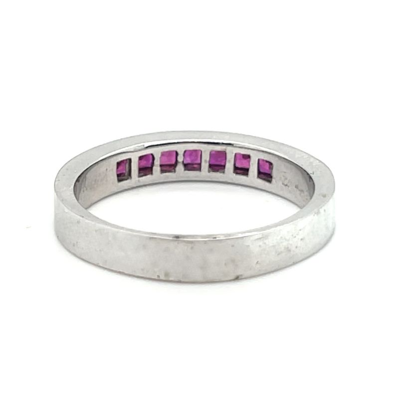 Princess Cut Channel Set Ruby Ring, 14kt White Gold. With 9 2.5mm Princess Cut Rubies, AA Quality.