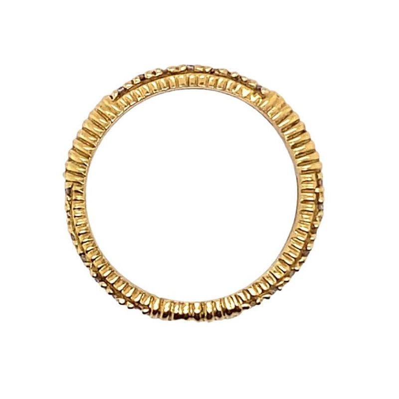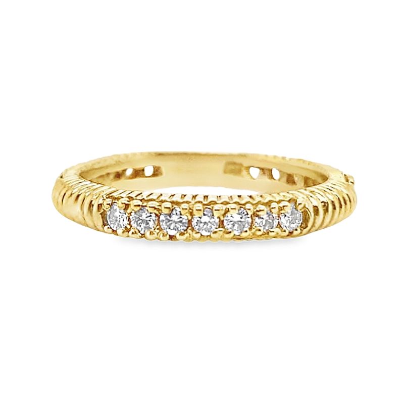 Ribbed Diamond Band, 18kt yellow gold. 21 round Brilliant Cut Diamonds. Carat – 0.52cts Clarity – SI Color – G This band is textured all the way around but could be sized.