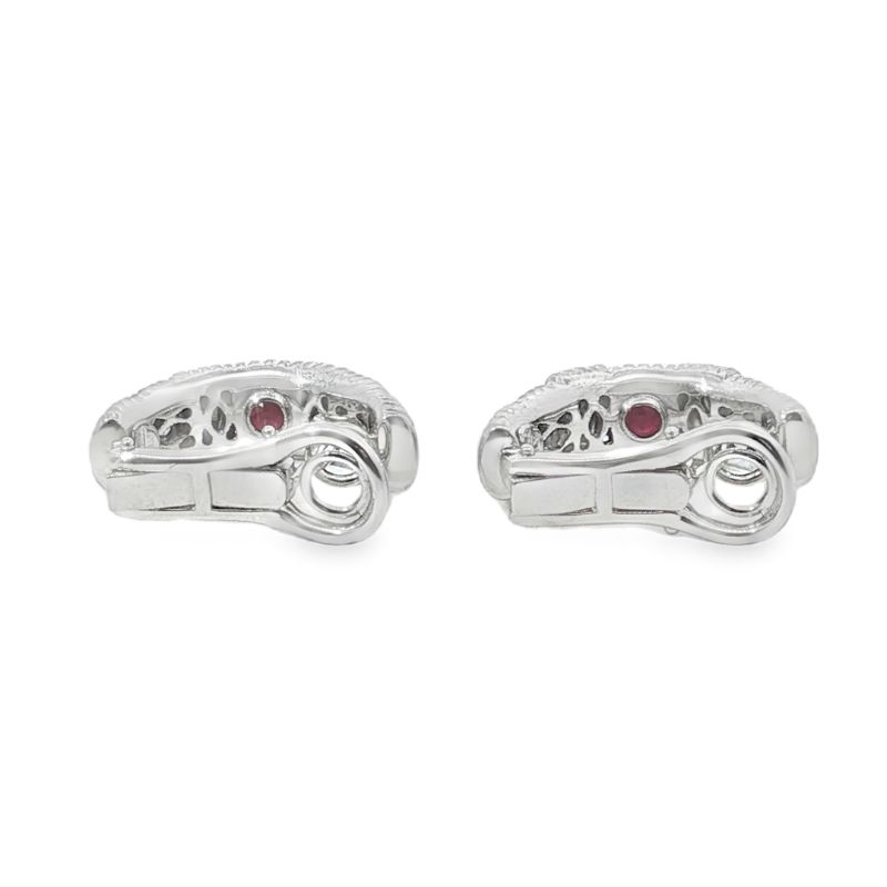 Roberto Coin Diamond Earrings with 36 Round Diamonds at 0.50ctw 2 Signature Rubies inside at 0.10ctw. 7mm Wide and 22mm Total Length. Crafted in 18kt White Gold with with French Clip