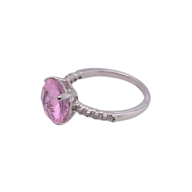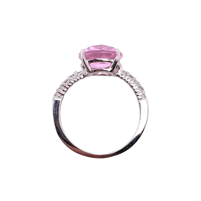 10mm Round Pink Quartz and Diamond Band Ladies Solitaire Ring