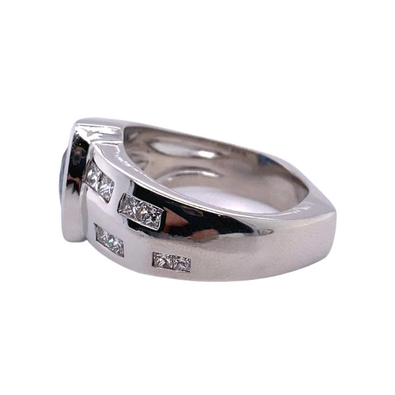 Polished AA 3.83ct Sapphire, Bezel Set with 8 Princess-Cut Invisibly Set Diamonds, Crafted in 14kt White Gold,