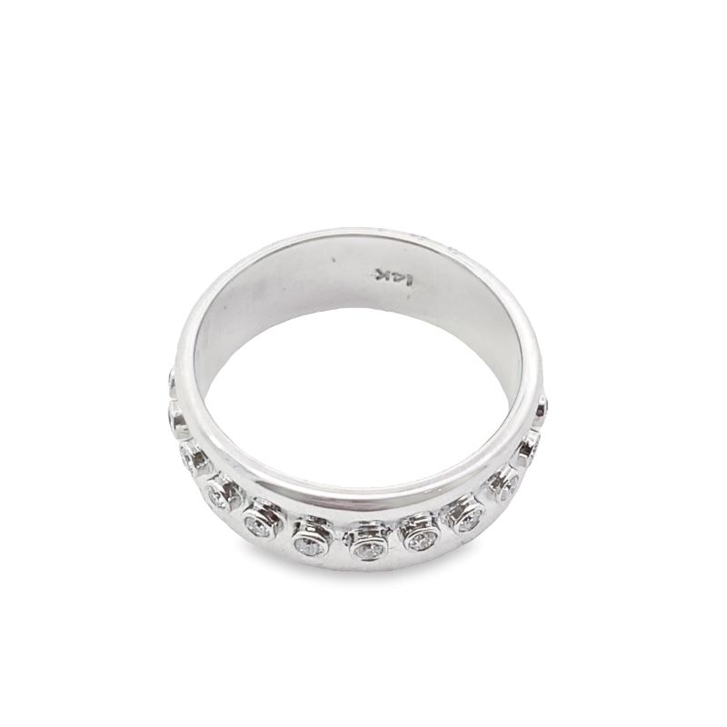 Scott Kay Gents Diamond Band Model #G3178DB708WW, 20-rd Diamonds Bezel set at 0.65ctw, VS Clarity and F-G Color. 7.5mm Wide and Crafted in 14kt White Gold.