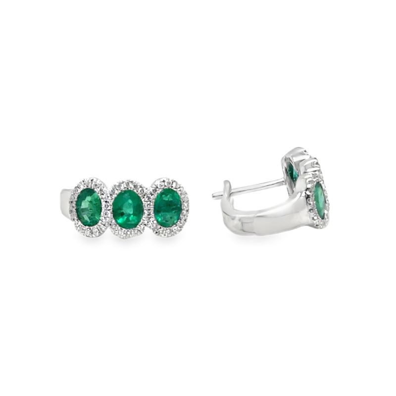 Serj and Sons 3 Oval Halo Emerald and Diamond Higgies, 18kt White