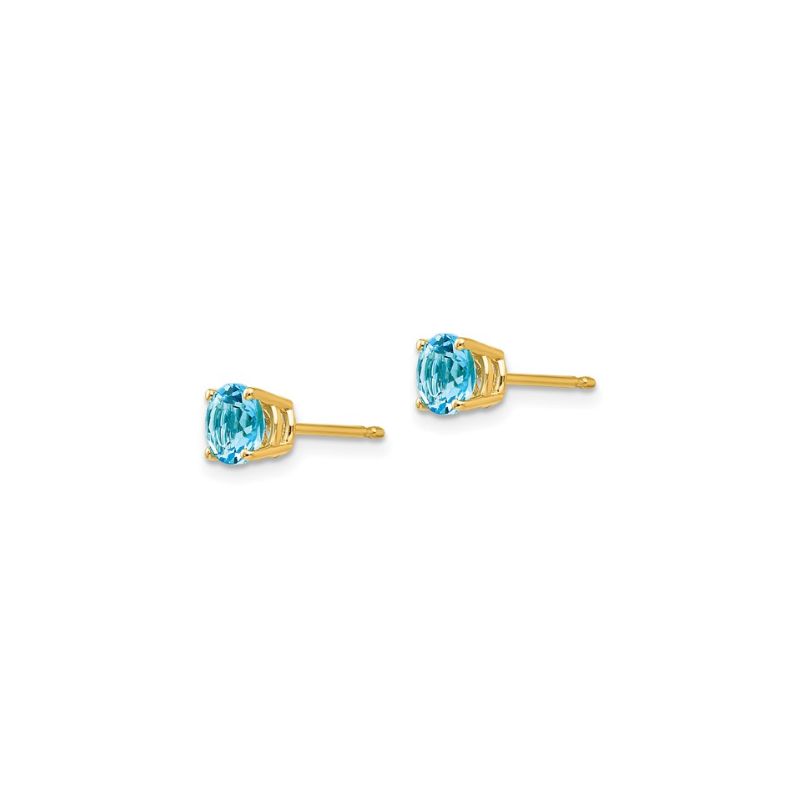 Polished 5mm Blue Topaz Stud Earrings, Push Back Posts, Crafted in 14kt Yellow Gold