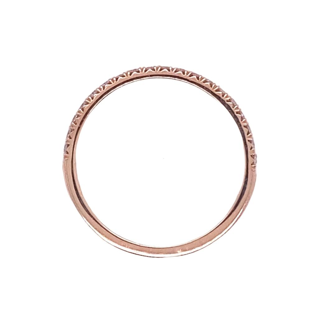 Thin Diamond Stackable Band, 14kt Rose Gold. 19 Round Diamonds, Half-Way Around, Split Prong. Carat – 0.27ctw, Clarity – SI1, Color -F/G
