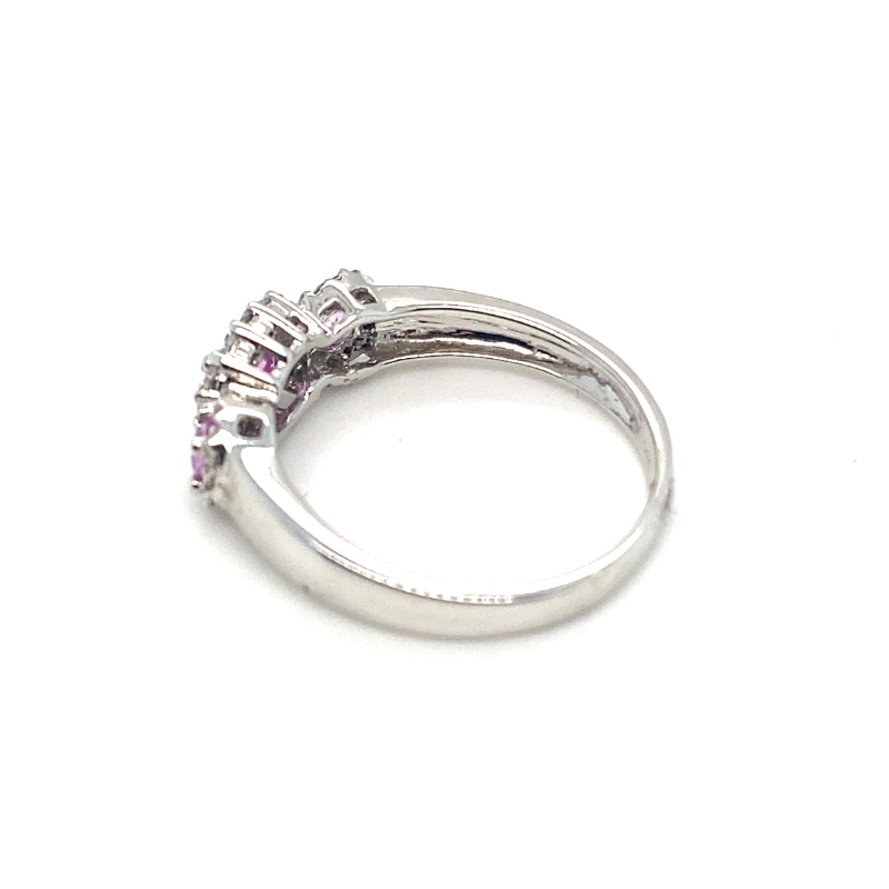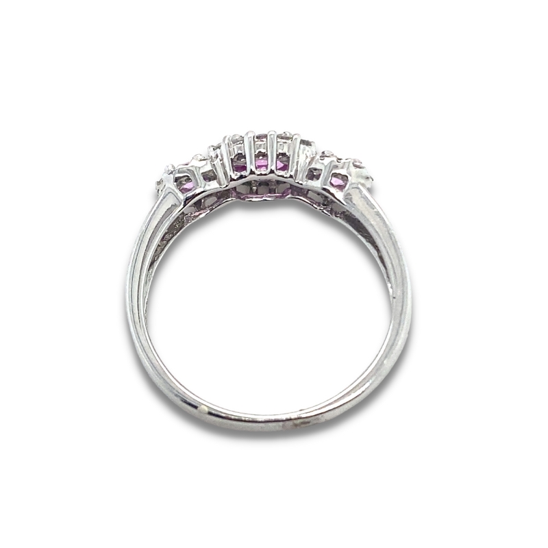 Three Oval Pink 0.75ctw Sapphire and 0.33ct Diamond Halo Ring