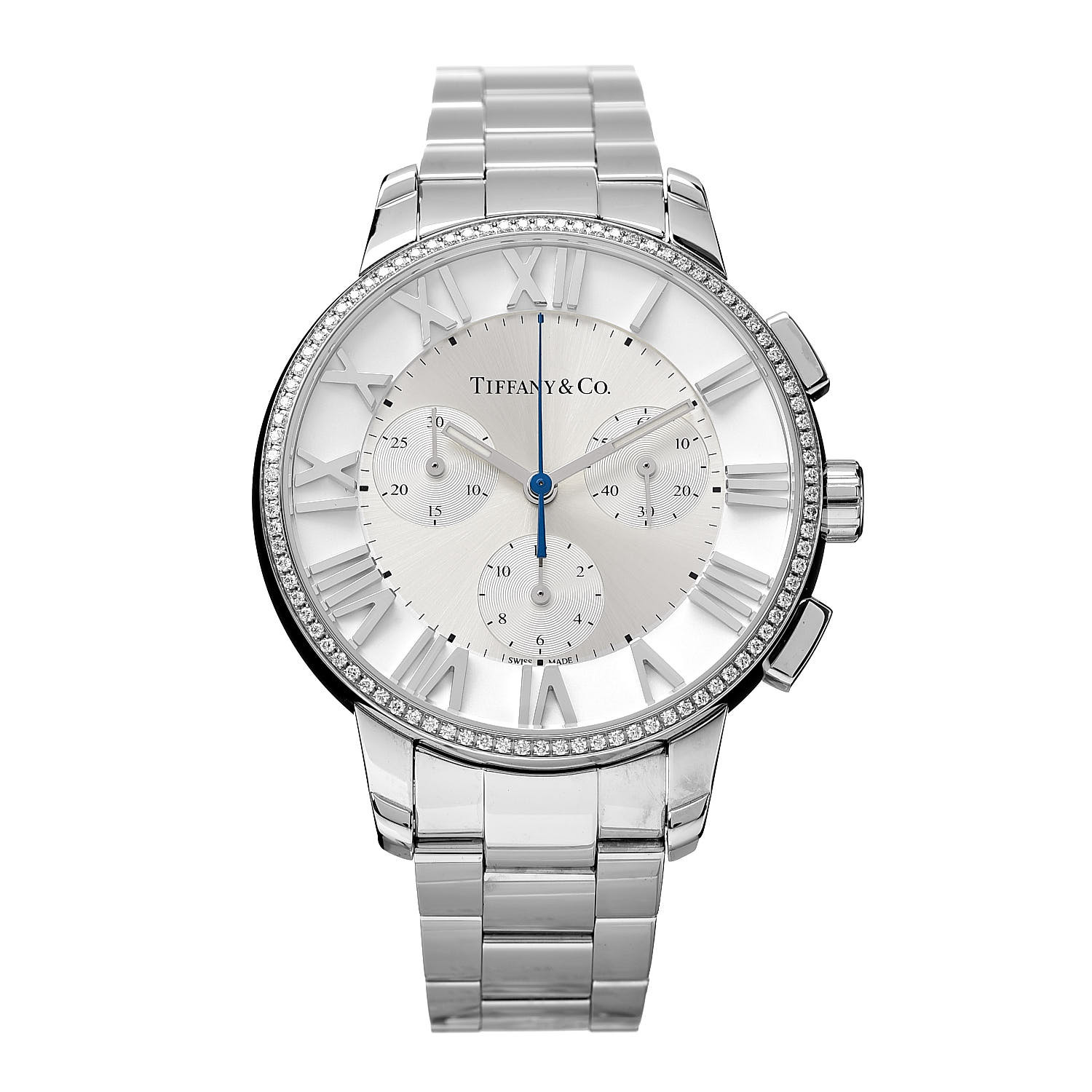 Tiffany Atlas 37mm Chrono watch with Diamond Bezel. Quartz on Bracelet. Brand New Box and papers