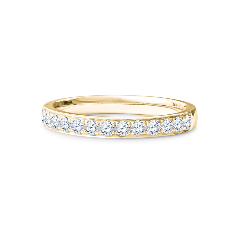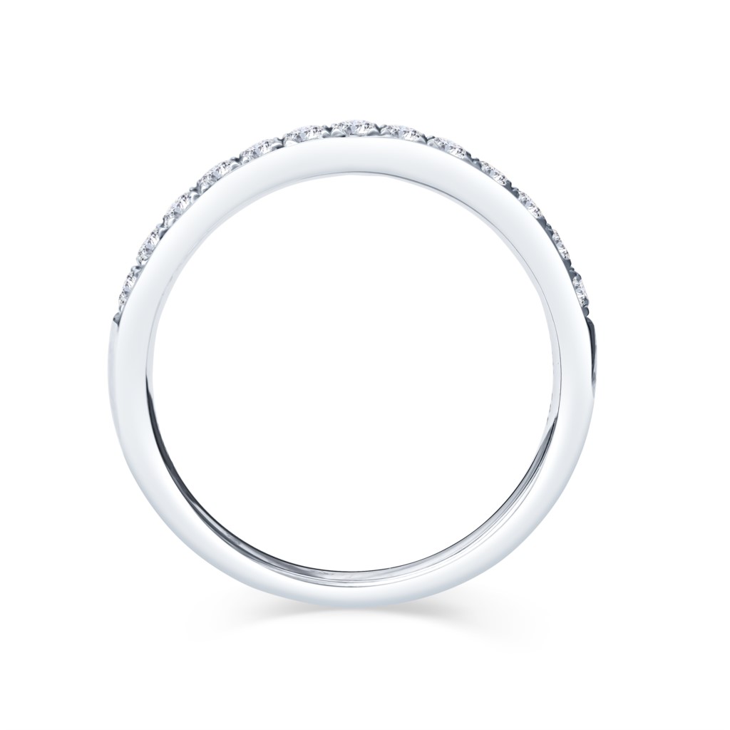 Timeless Bridal Thin Pave-Set diamond band, 2.40mm. 15-rd 0.30c, Split Bead pave-set band in 14kt White gold. Available in White, Yellow, and Rose Gold.