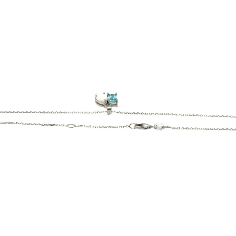 Toi Moit Pendant with a 7x5mm Pear Shape Opal and 6x4mm Emerald Cut Blue Zircon. Crafted in 14kt White Gold on D/C Cable Chain with 2 Adjusters