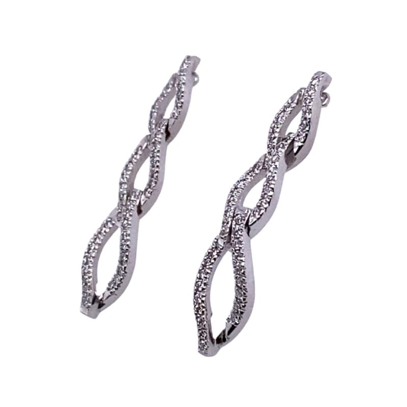 Triple Loop Diamond Drop Earrings, 18kt White Gold. 98 Round Diamonds, split prong set. Carat – 0.80cts, VS/FG