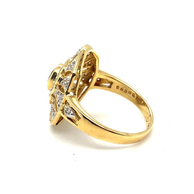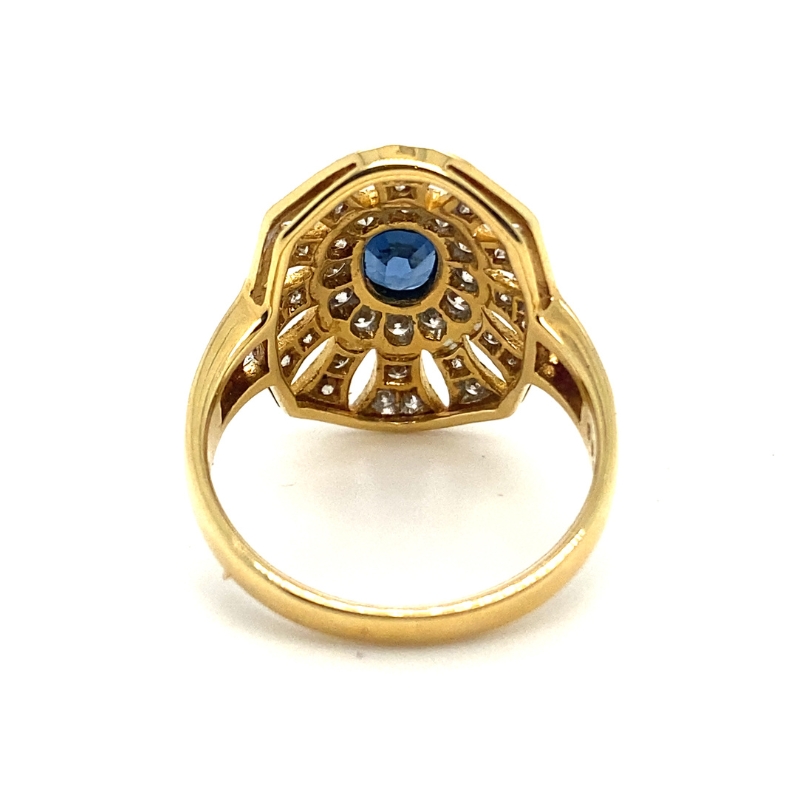 Two Tone Vintage Inspired Oval Sapphire and Diamond Shield Ring