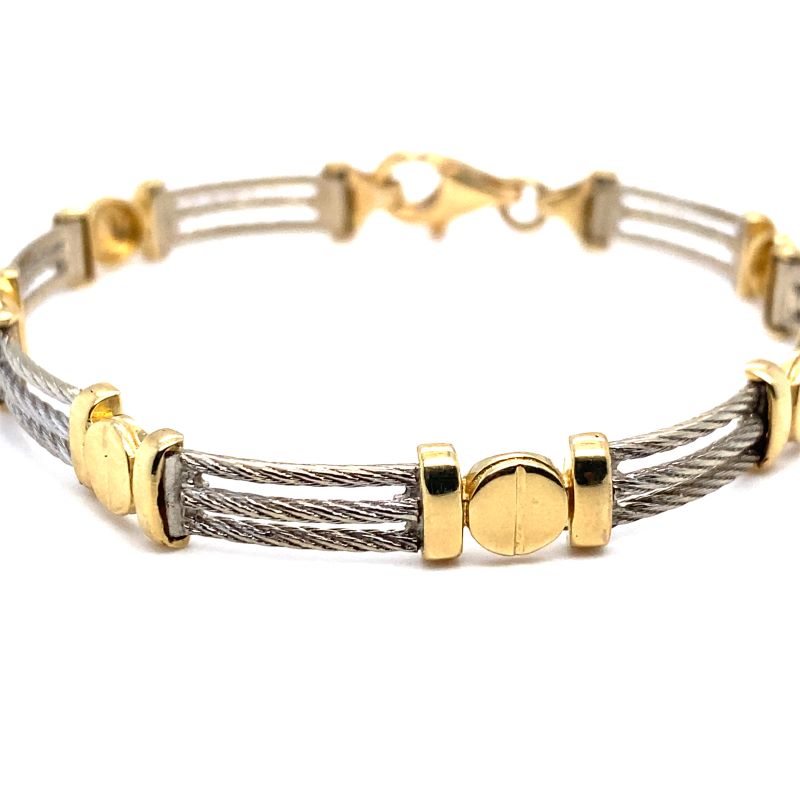 Two Toned Cable Link Bracelet, 14kt White and Yellow Gold