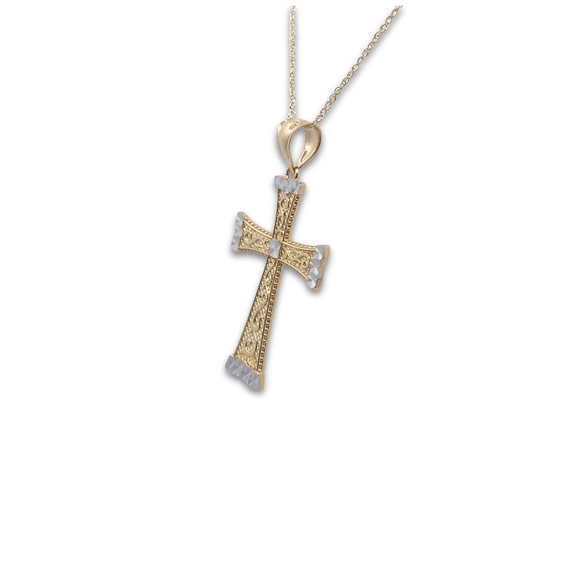 Two Toned Cross with Swirl Design, 14kt Yellow Gold