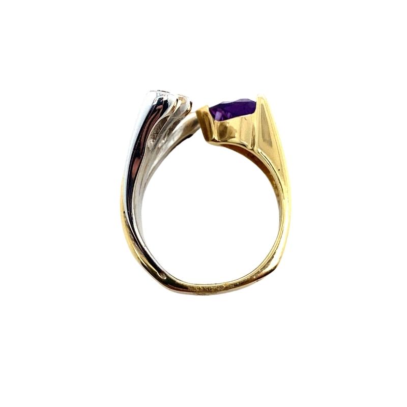 Two Toned Diamond and Amethyst Trillian Shaped Ring