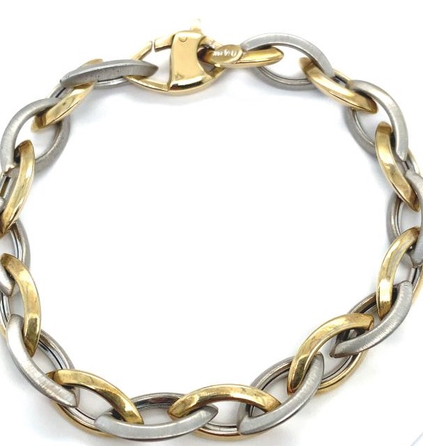 Two Toned Fancy Italian Link Bracelet, 14kt White and Yellow Gold