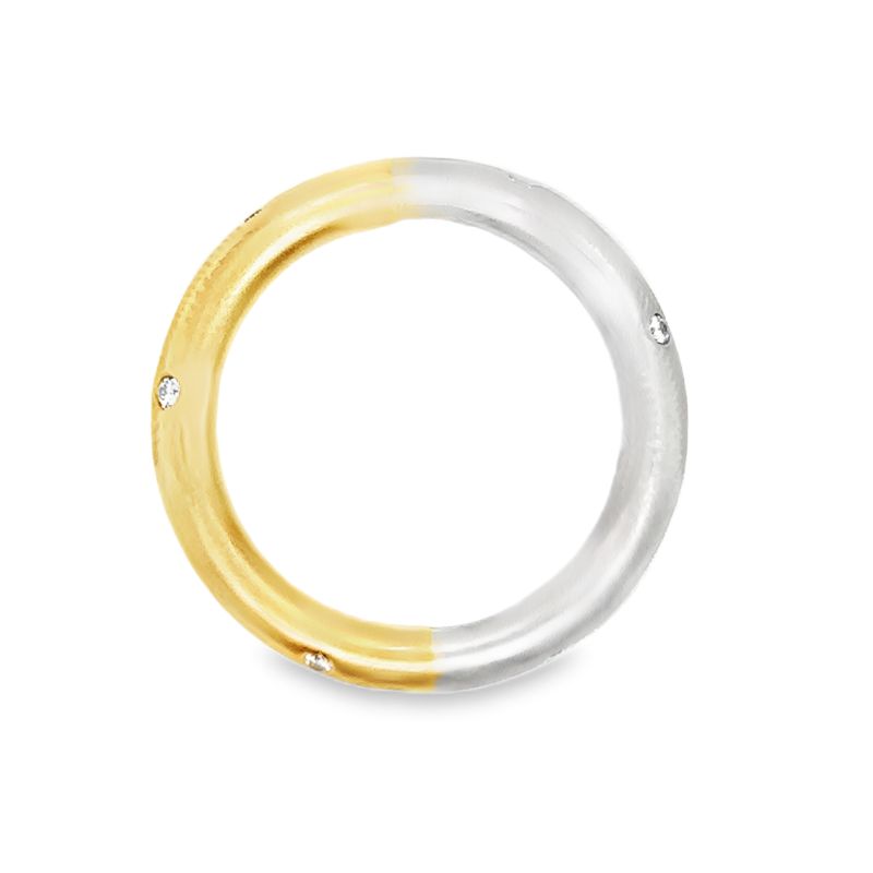Ursula Scholz Wire Band with Diamonds, Ref#528B10. 10 Round Diamonds Moon Set at 0.10ctw, VS Clarity and F Color. 2.8mm wide and Crafted 18kt and Platinum in Germany