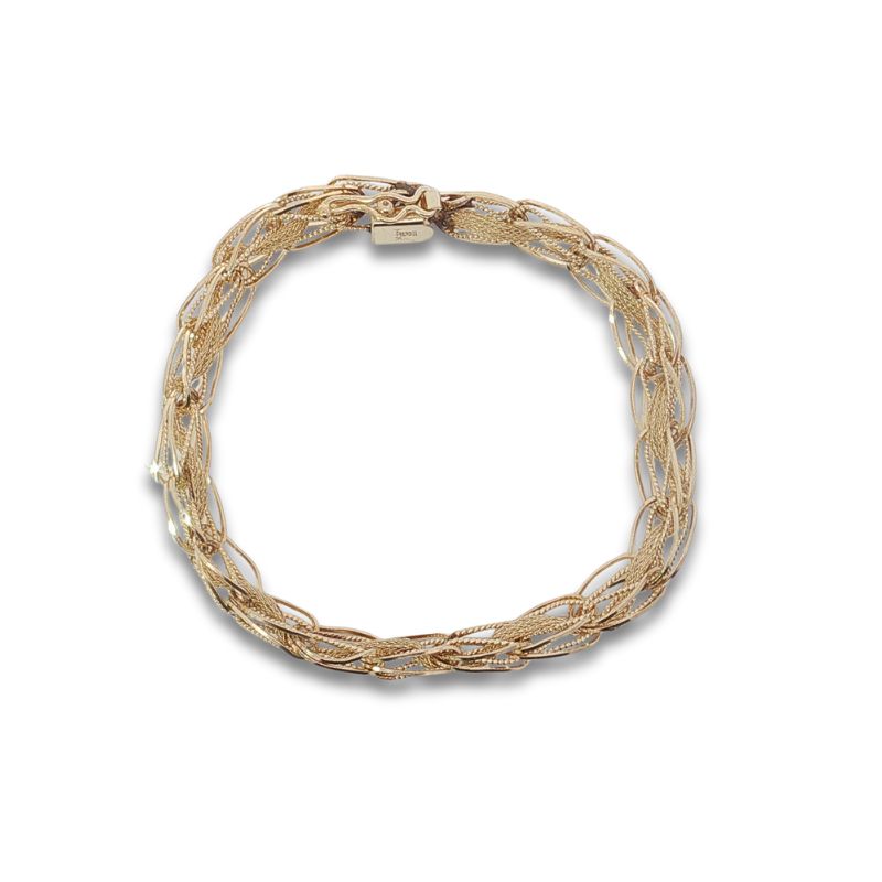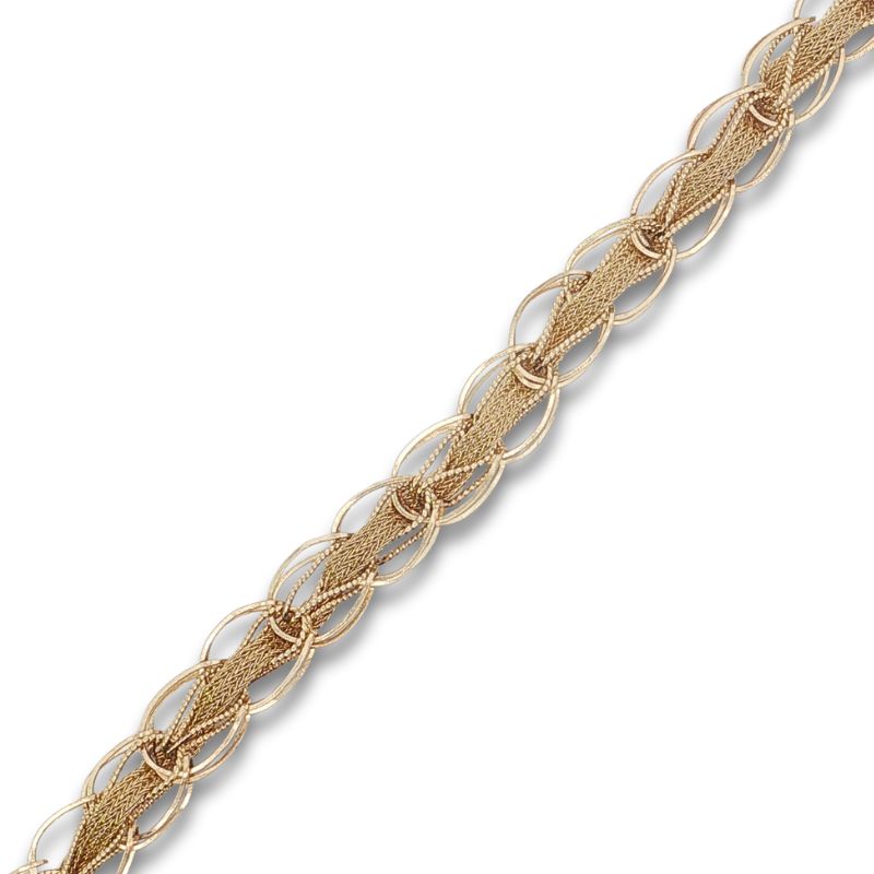 Vintage Charm Bracelet with Mesh Center. 9mm Wide Hand Crafted in 14kt Yellow Gold Circa 1970’s