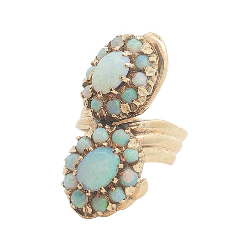 Vintage Large Double Halo Opal Ring, 14kt Yellow