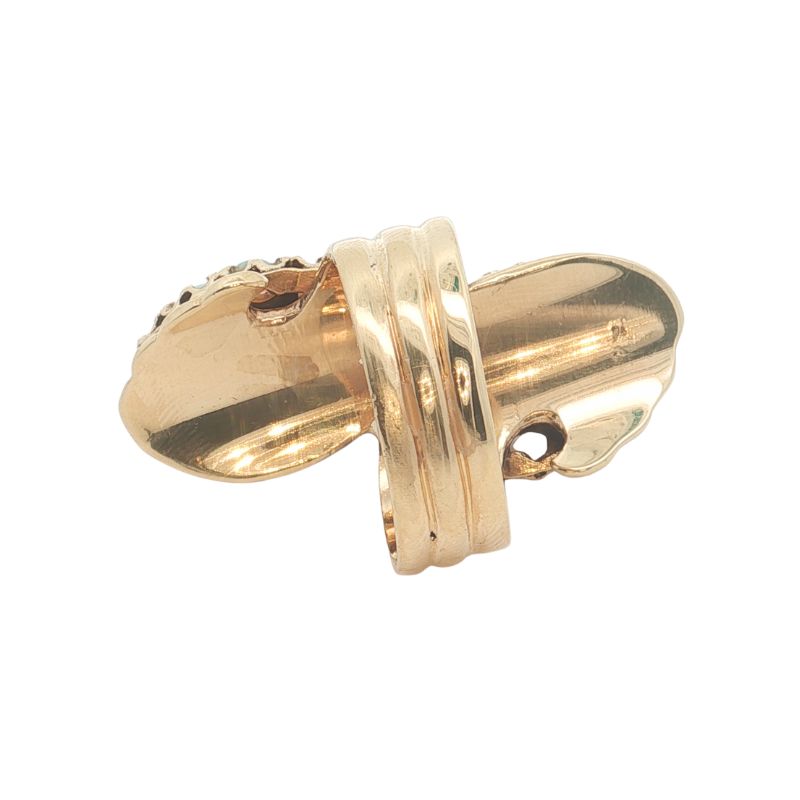 Two 8x6mm and Twenty 3mm Sutralian Opal Prong Set. 35mm Total Width, Vintage Circa 1970’s, Hand Crafted in 14kt Yellow Gold with a 6mm wide grooved band.