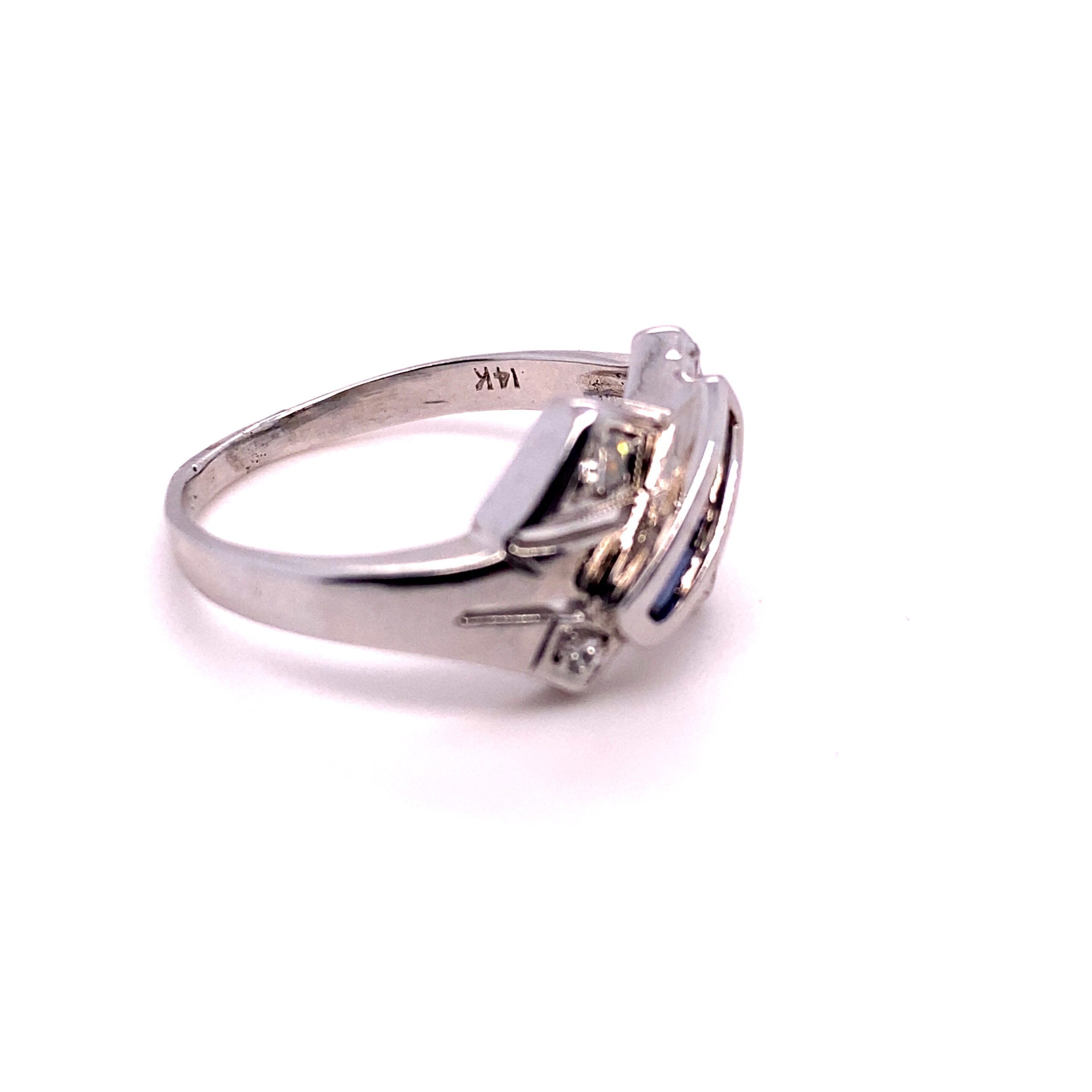 Vintage Diamond Ring with 4-Single Cut Diamonds Pave Set at 0.20 Carat, VS Clarity, and G Color. 2 Baguette & 1 Princess Sapphire, Vintage Ring from the 40’s. Sizable upon Request