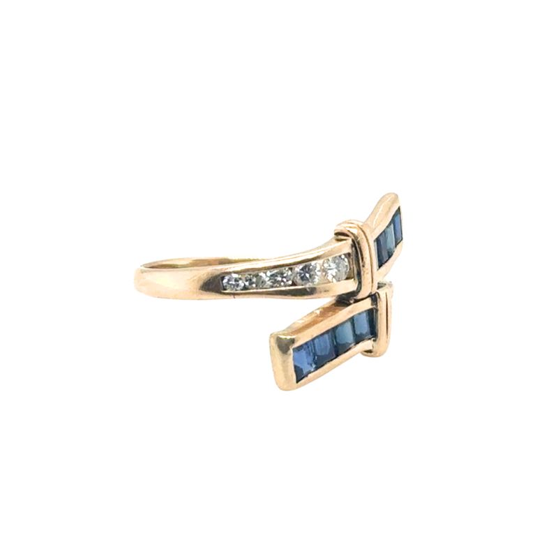 Vintage Sapphire and Diamond Bypass Ring, 14kt Rose
