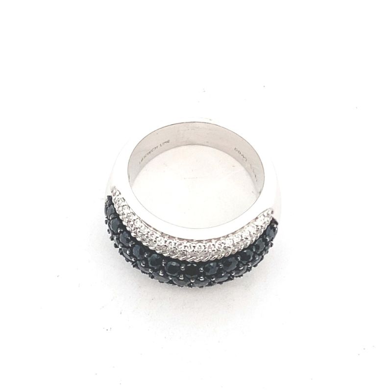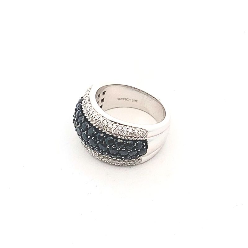 Wide 3 Row Dome Black Sapphire and Diamond Ring with 80 Round Diamonds Pave Set at 0.47ctw, SI Clarity and G Color. With 37 Dark Blue Sapphire at 2.40ctw. 12.5mm Wide Ring Crafted in 18kt White Gold.