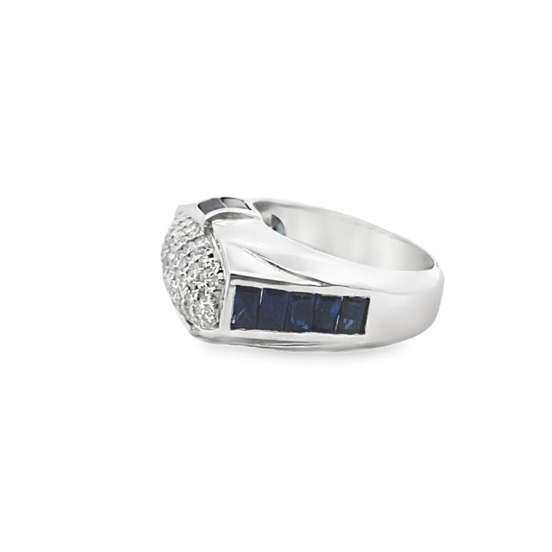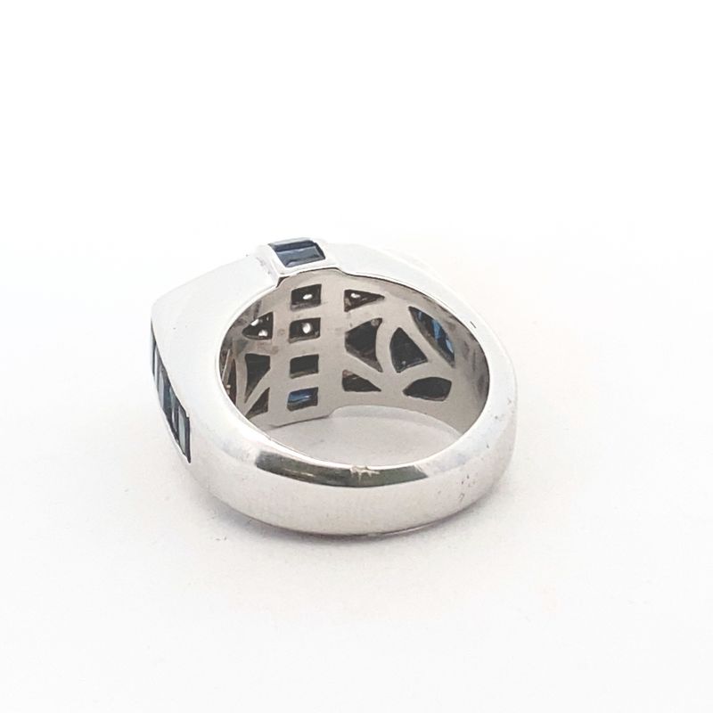 Wide Art Deco Diamond and Baguette Sapphire Ring, 18kt